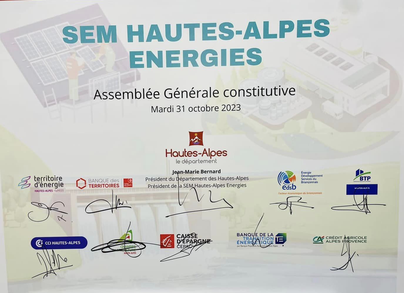 Mardi 31 octobre dernier, la société d’économie Mixte « Hautes-alpes énergies » a été créée lors de l’assemblée générale constitutive. Cette nouvelle structure permettra d’accélérer le développement des énergies renouvelables dans le département des Hautes-alpes et de valoriser les ressources locales.